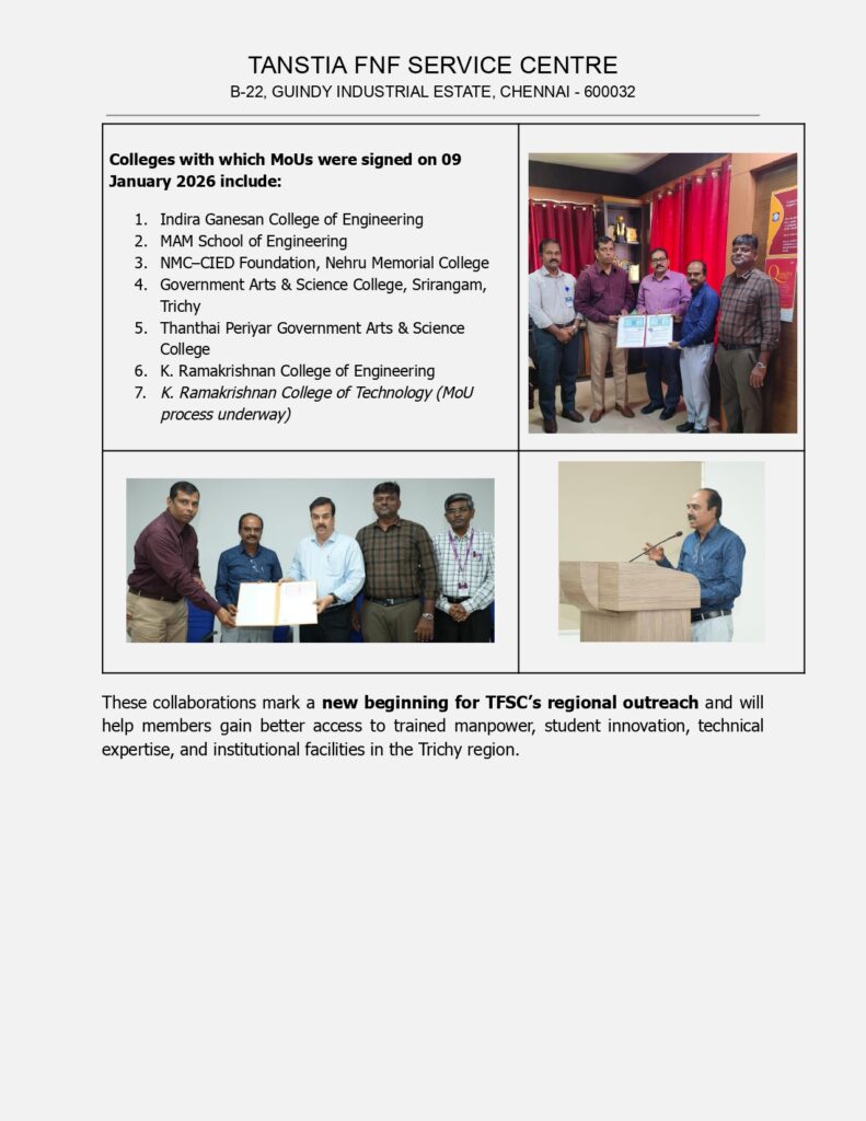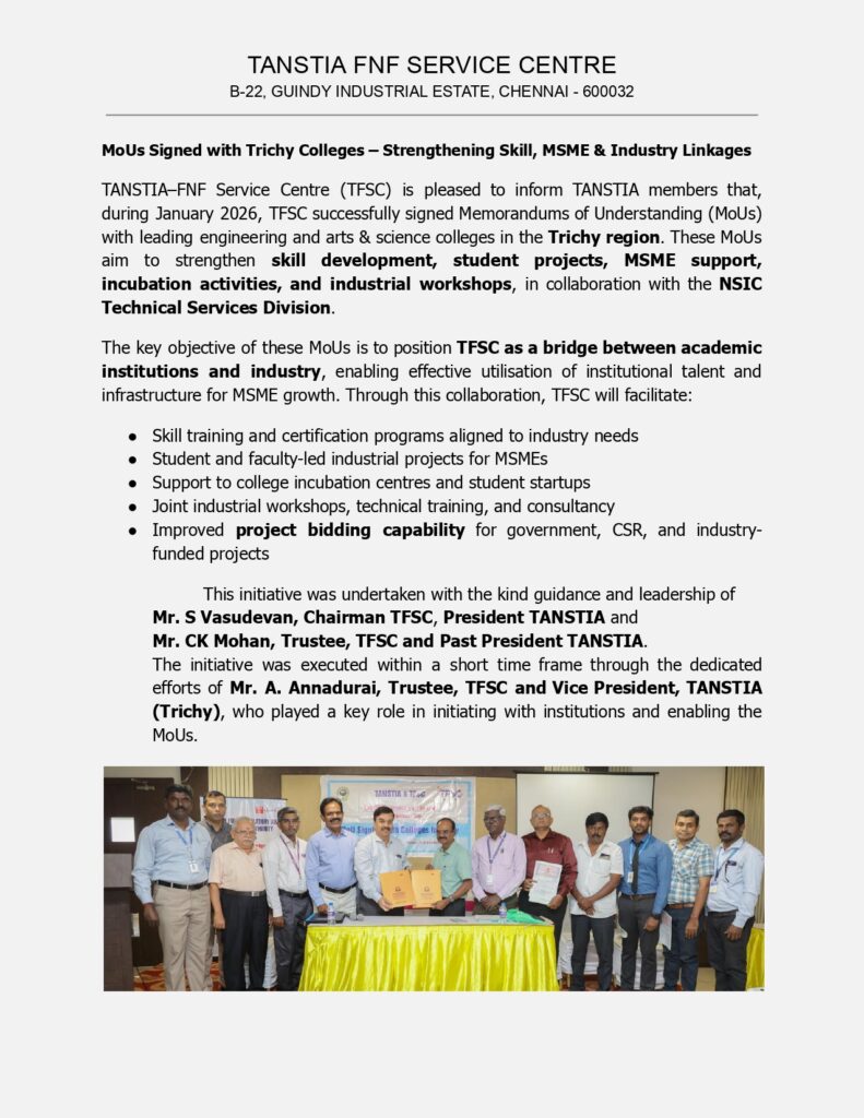 MoUs Signed with Trichy Colleges – Strengthening Skill, MSME & Industry Linkages